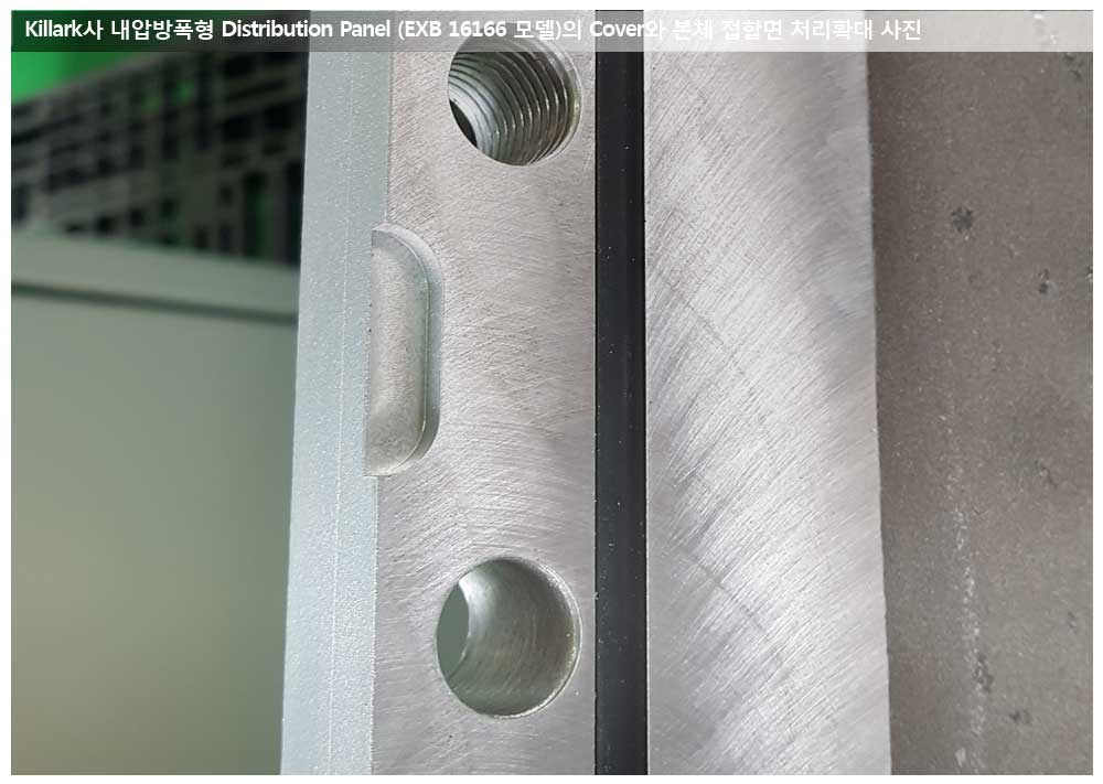 또한 내압방폭 박스의 Cover를 개폐할때 접합면의 손상을 방지하기 위해 Cover의 끝에 손가락 두개정도가 들어갈 수 있는 홈을 내어 여닫을때의 편리함을 주고 있습니다.(네번째 사진)